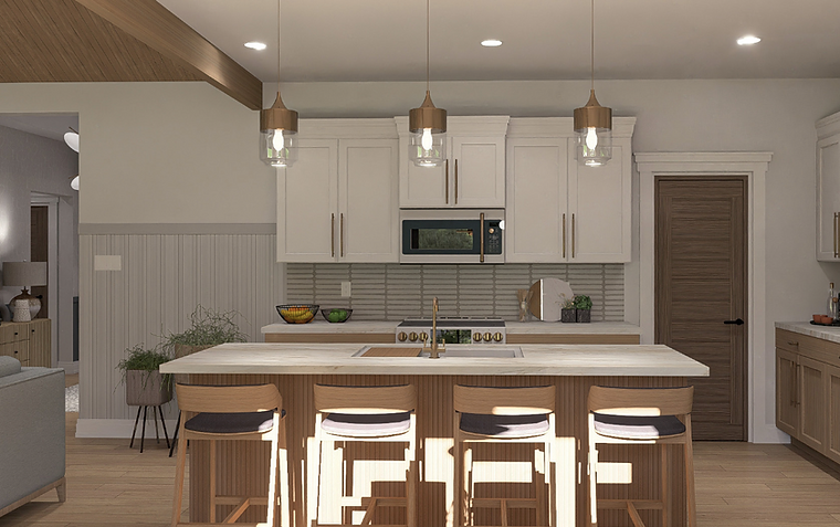 Smart, stylish, and fully customizable — The Marina is a modern ranch plan offering 1,686 sq. ft. of well-designed living space. With 3 bedrooms and 2 baths, this open-concept layout features a spacious kitchen with a central island, perfect for hosting or everyday living. The vaulted ceiling in the family room adds a bright, airy feel, while thoughtful design touches throughout make this plan as functional as it is beautiful. Tailor every detail to make The Marina your own.